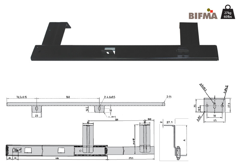 Keyboard slide for 284mm (11 3/16 ”) shelves and more.Features