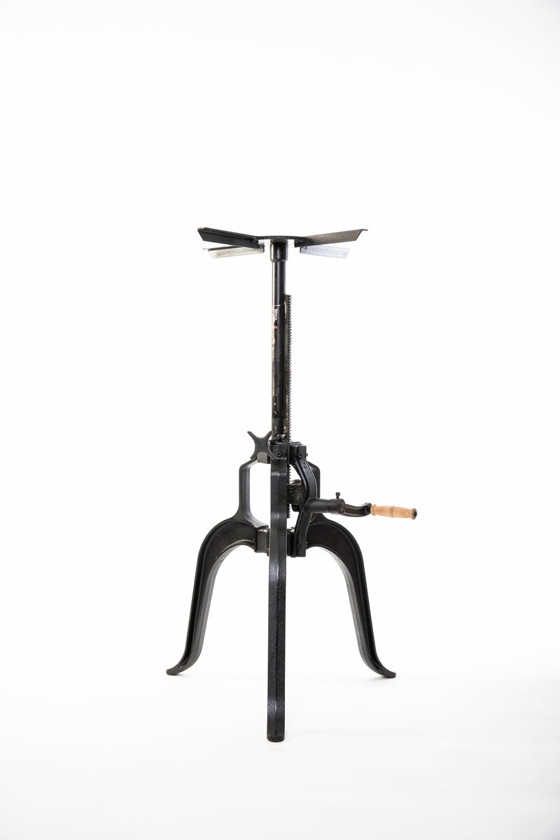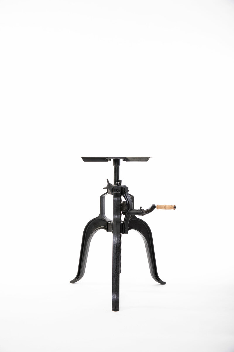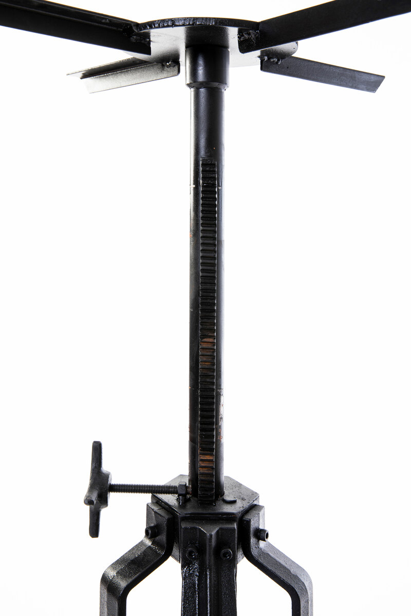 Crank coffee table base in cast iron with adjustable height