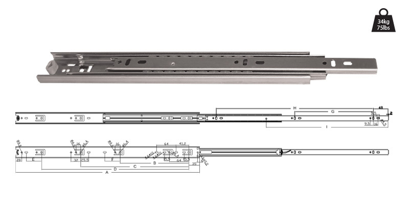 Coulisse à billes pleine extension - 611X-XX