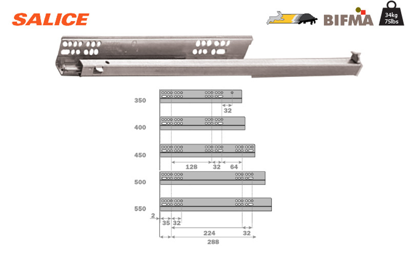 Coulisse Futura Smove 3/4 extension avec amortisseur - A6155XSC-XX