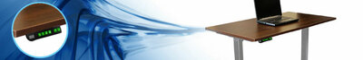 This electrical model has two legs and two motors. The remote control has an LED readout that allows for the user to see the height of the table, as well as having 4 presets that enable the user to save up to 4 favourite working heights. The very quiet motors will stop the lift or descent action if the table has excess weight on one side. Once the intrusion is corrected, the table will function normally.* A reset may be required. It is adjustable in height and width to give you the most options possible.