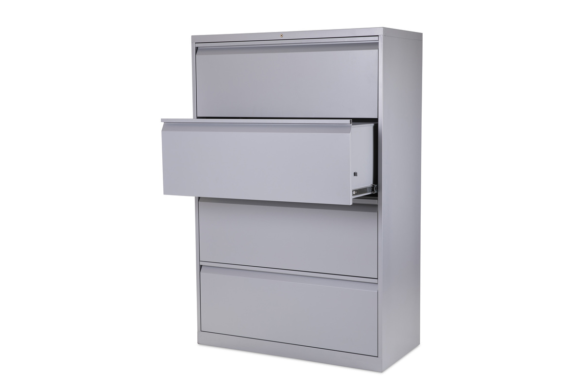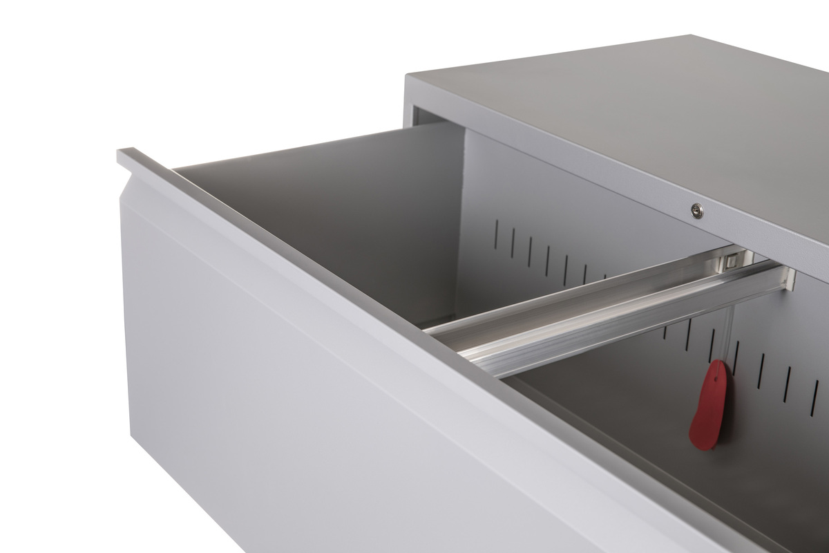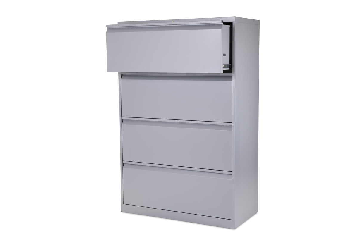 The lateral filing cabinets have a built-in anti-tilt mechanism and a built-in counterweight.