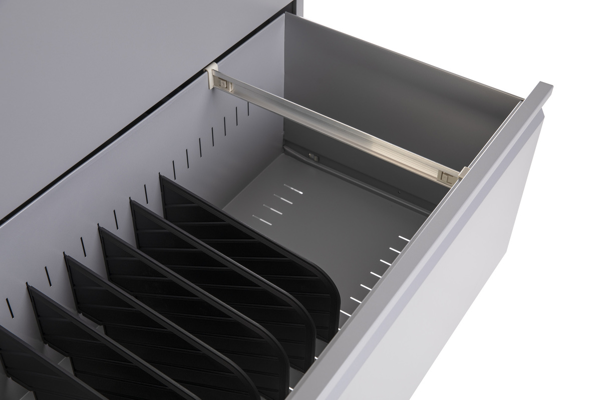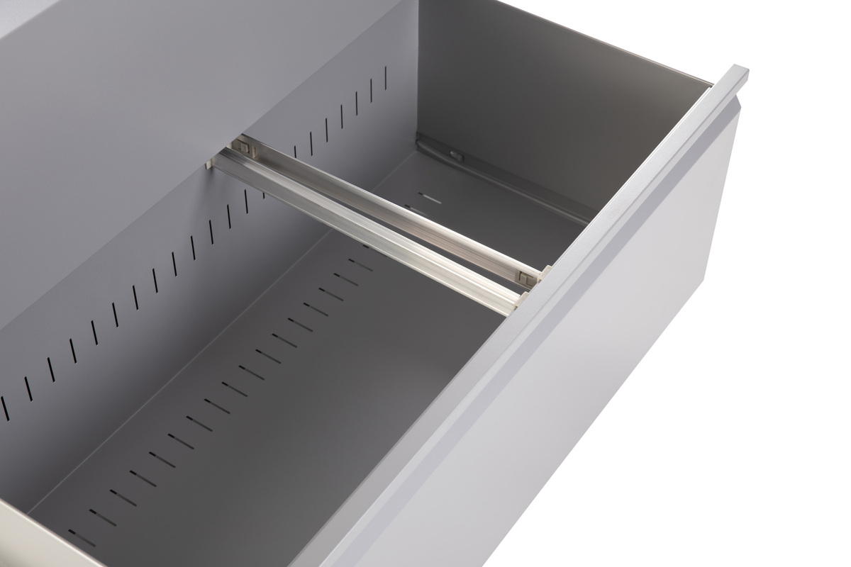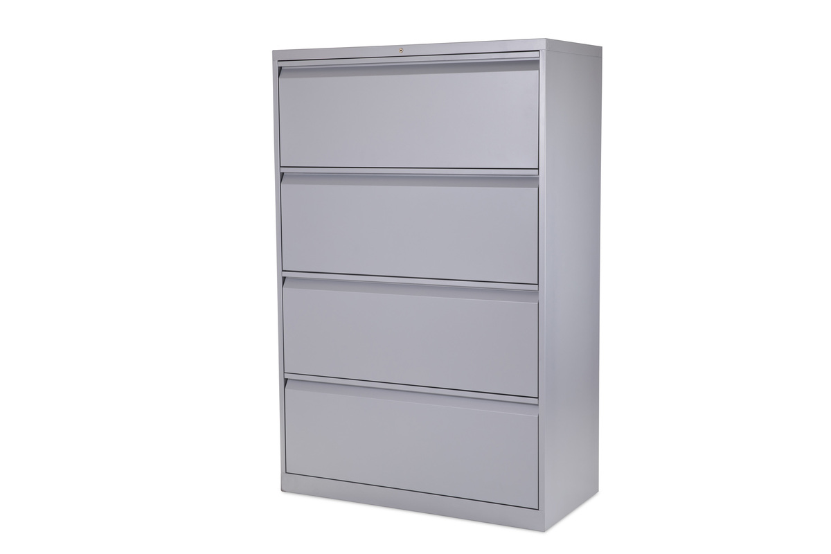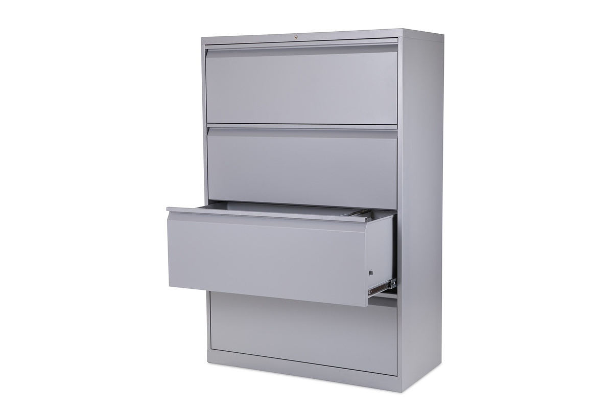 The lateral filing cabinets have a built-in anti-tilt mechanism and a built-in counterweight.